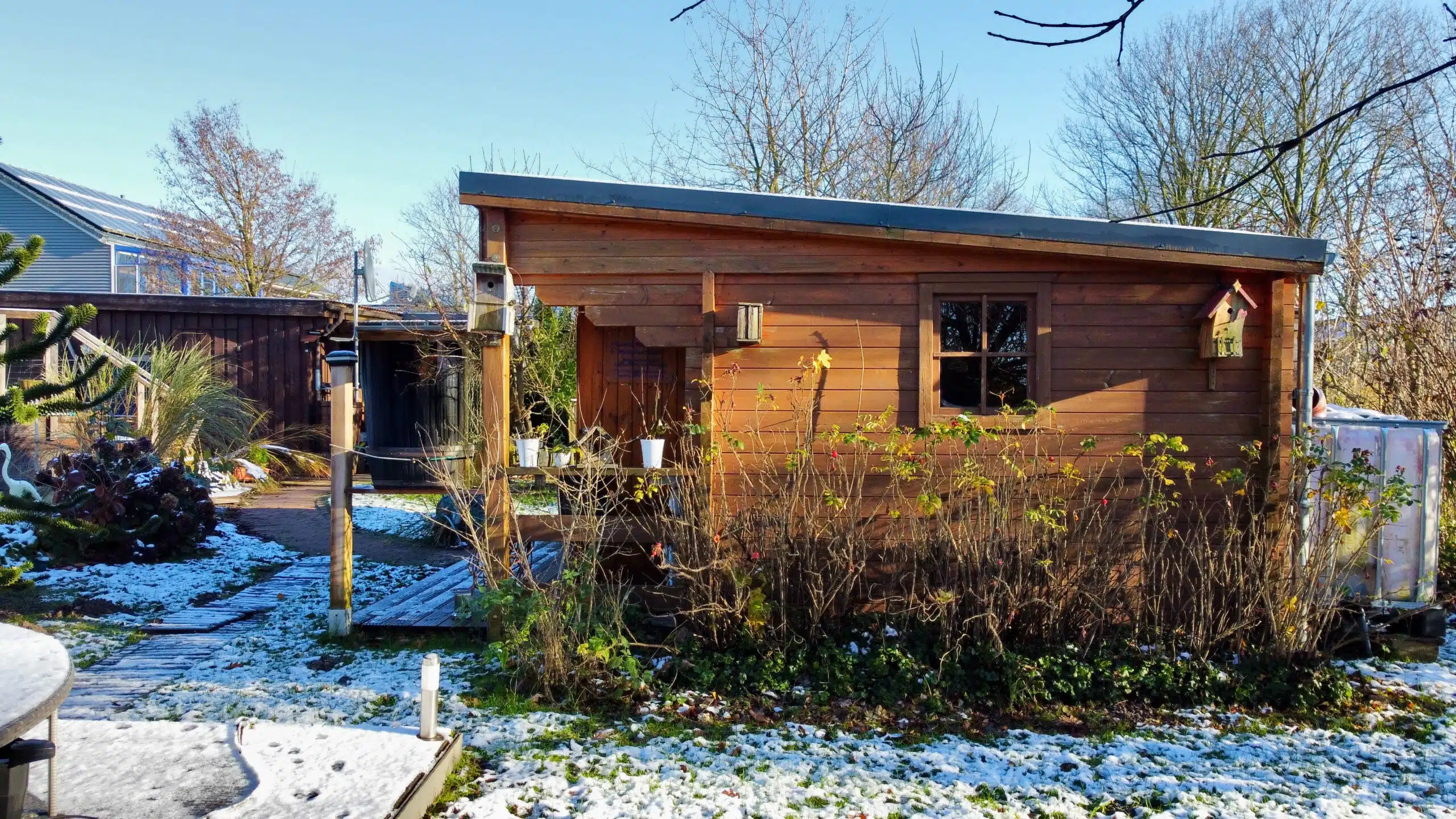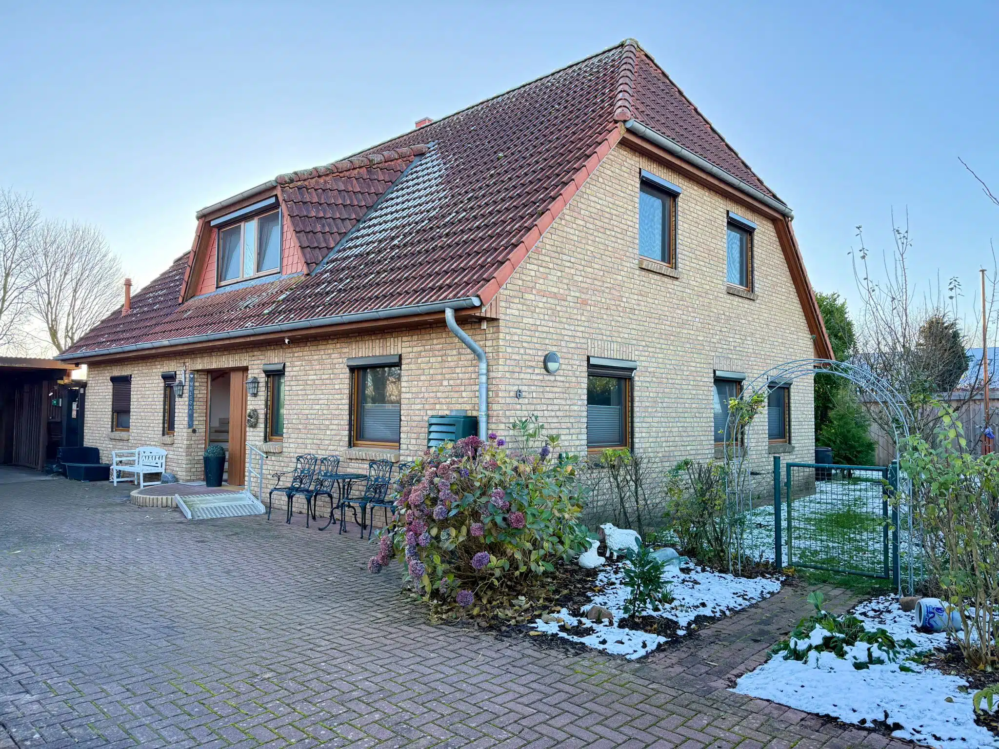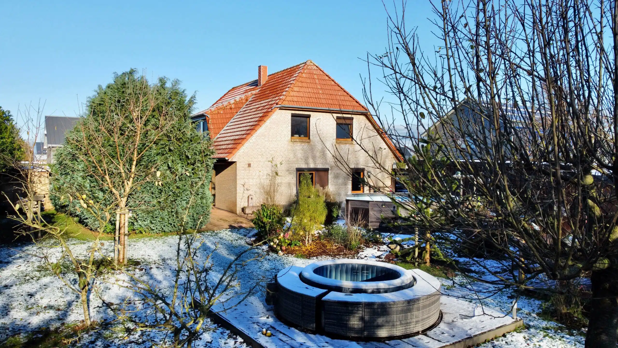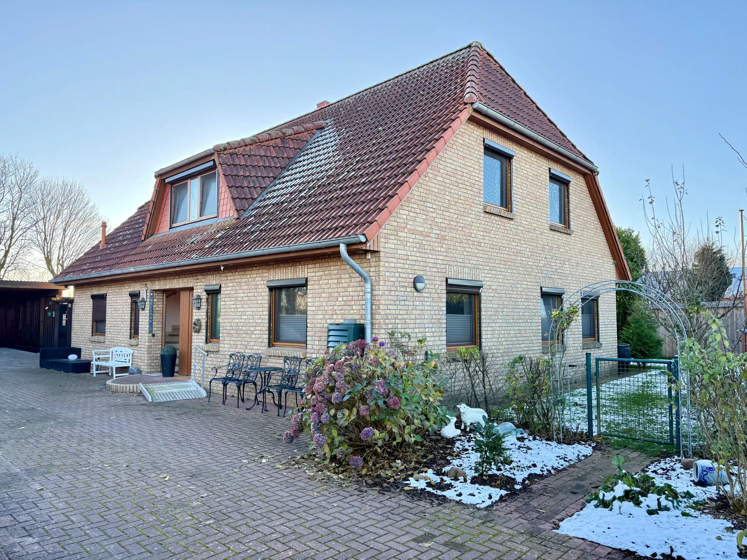 Bereits die Auffahrt mit Doppelcarport vermittelt einen einladenden ersten Eindruck. Von hier aus gelangen Sie trockenen Fußes direkt in den Hauswirtschaftsraum – besonders praktisch, um Einkäufe sofort und ohne Umwege zu verstauen. Der Garten überzeugt mit viel Platz, zwei separaten Gartenschuppen und einem beheizten Pool, der in den warmen Monaten für ein echtes Highlight sorgt. Ein Gartenschuppen ist aktuell als Gästezimmer eingerichtet. Im zweiten Gartenschuppen wurde zusätzlich eine geschützte Außendusche installiert, die sich ideal für die Nutzung nach dem Baden im Pool eignet. Sie ist so platziert, dass sie nicht einsehbar ist und damit Privatsphäre gewährleistet.