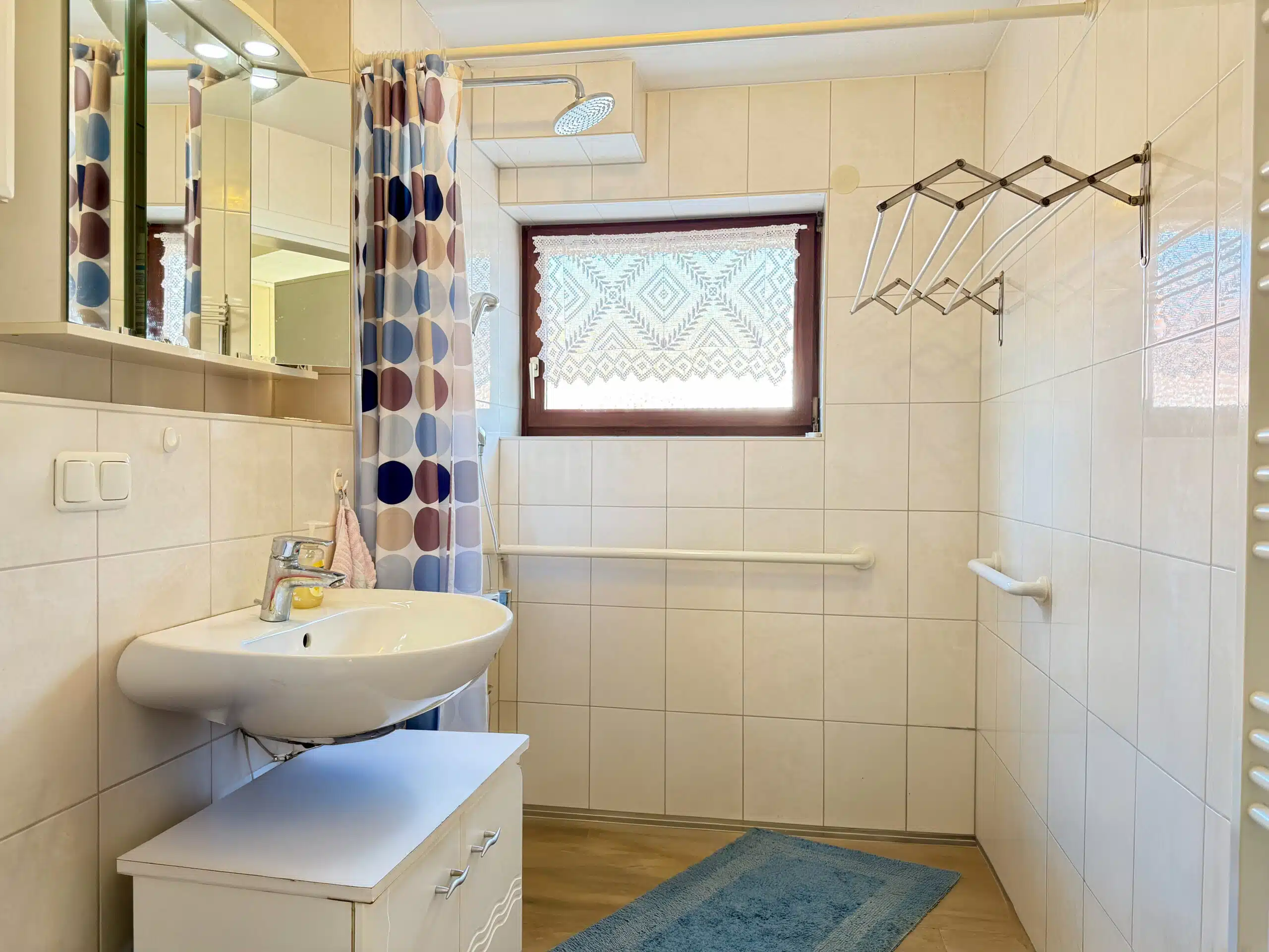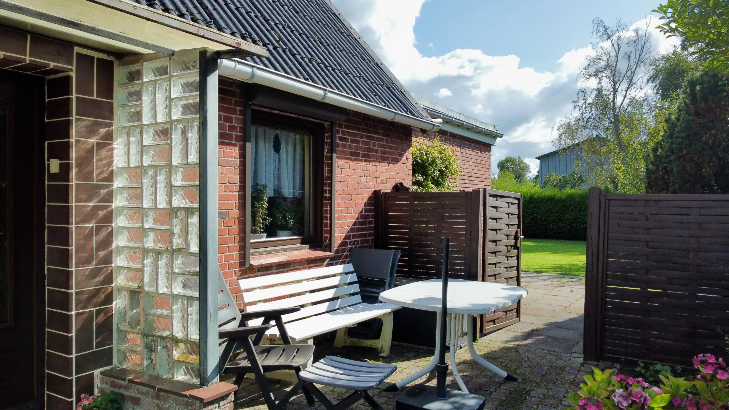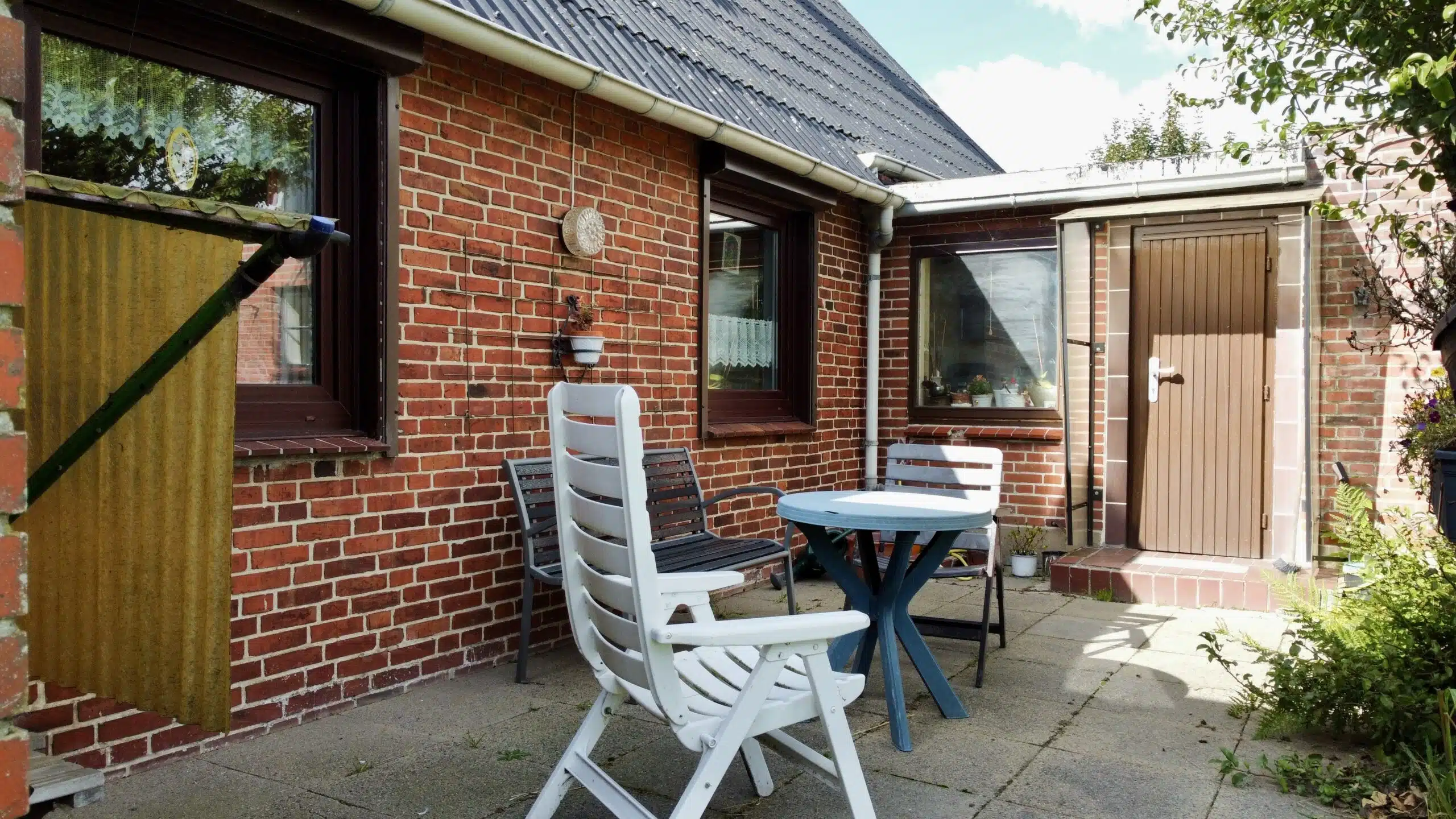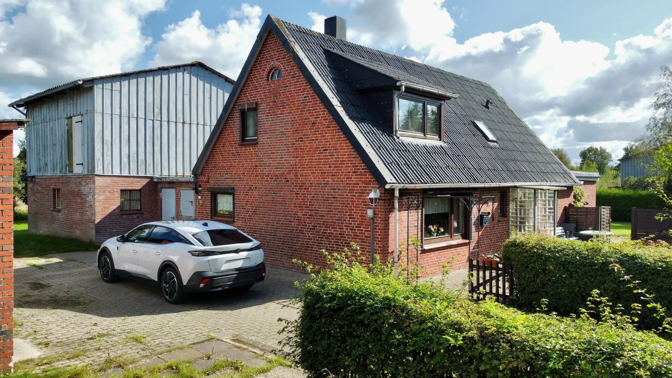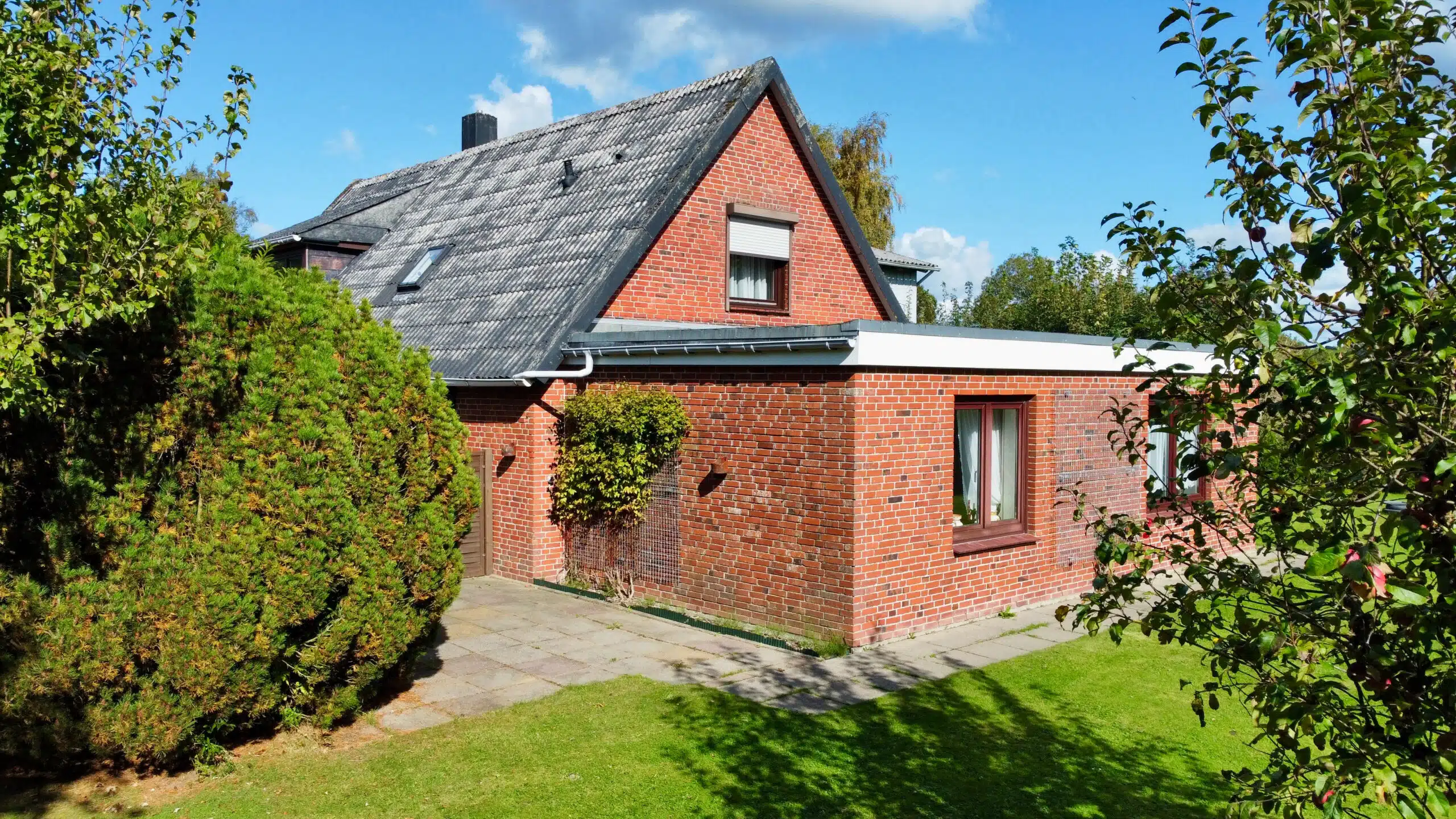 Das große Grundstück ist schön eingewachsen und vermittelt ein hohes Maß an Privatsphäre. Die Umgebung ist geprägt von Einfamilienhäusern, landwirtschaftlichen Gebäuden und weiten Grünflächen – ideal für alle, die Ruhe und Natur schätzen.