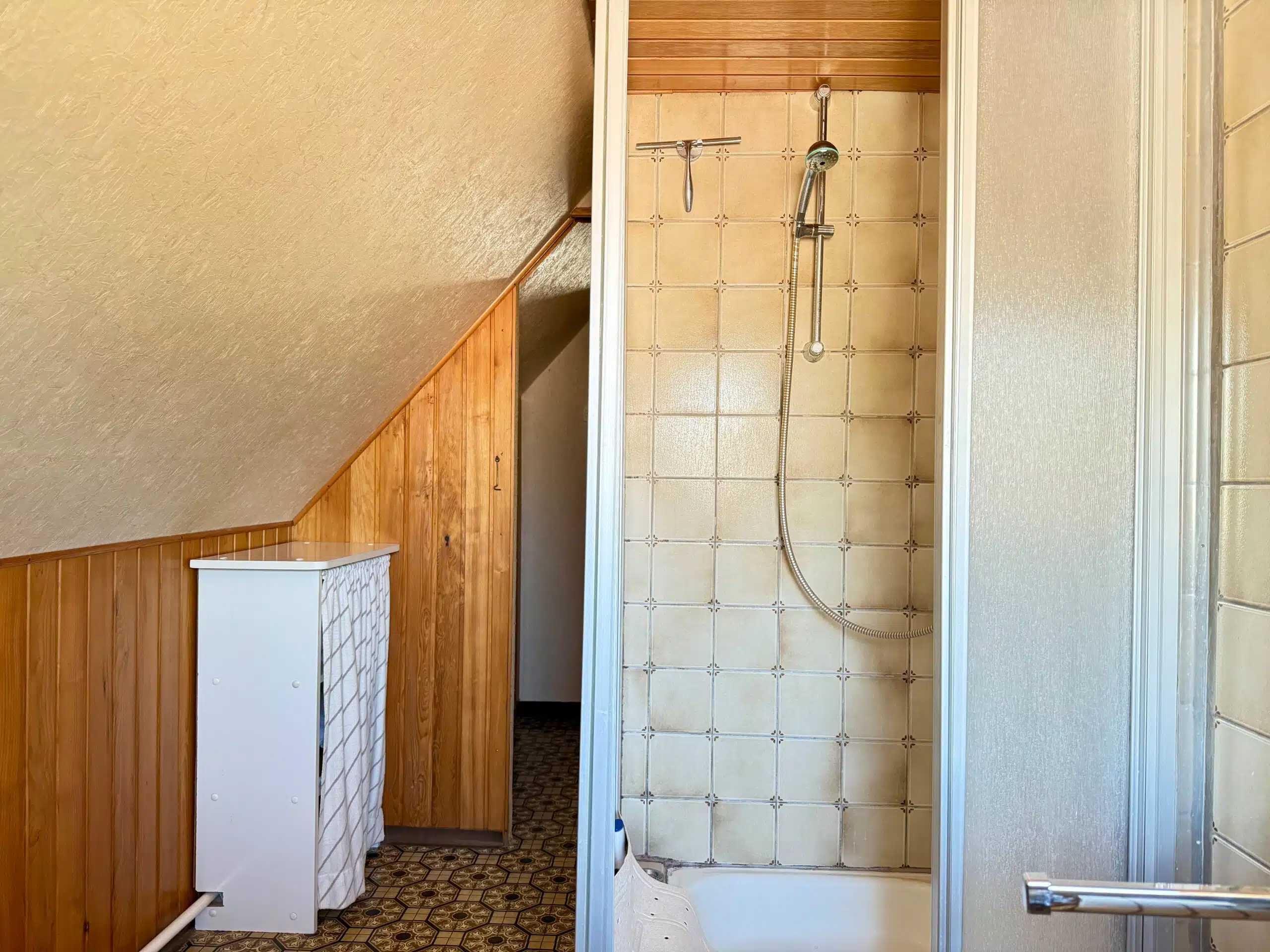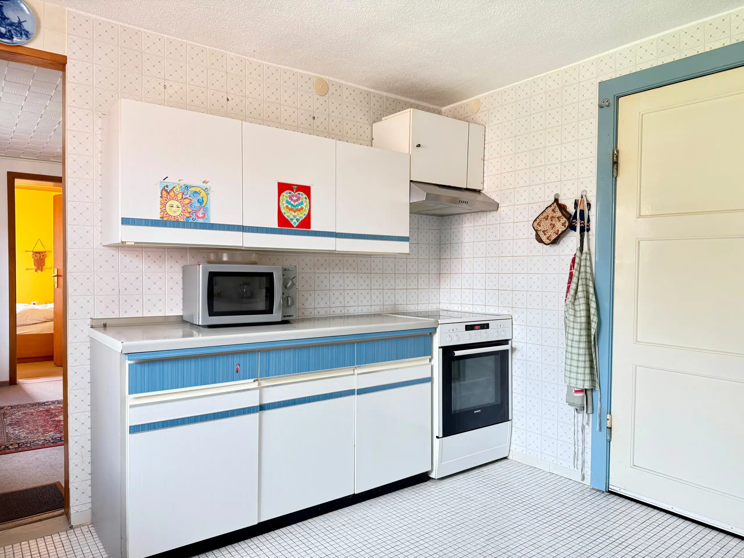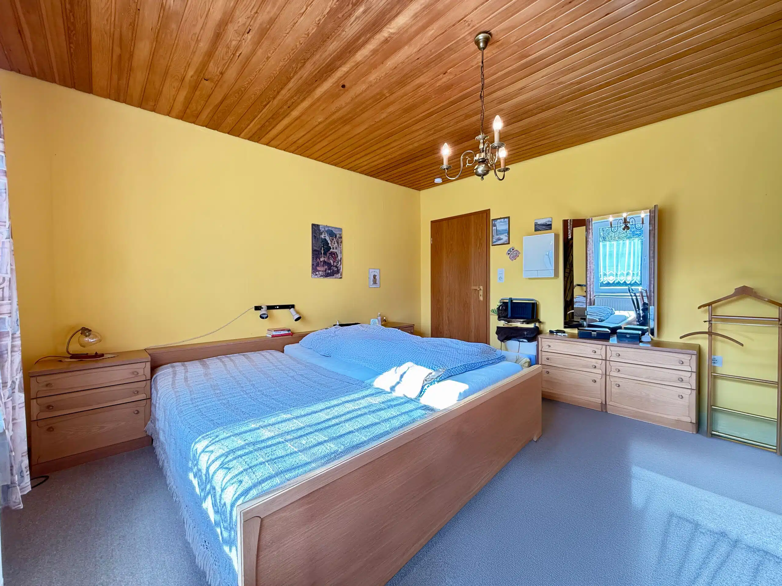 Im Erdgeschoss wurde in den 2000er Jahren das Badezimmer erneuert und mit Fußbodenheizung ausgestattet. Eine Holztreppe verbindet die Etagen, die Zwischendecken bestehen aus Holzbalkenlagen. Zwei Terrassen erweitern die Wohnmöglichkeiten ins Freie.