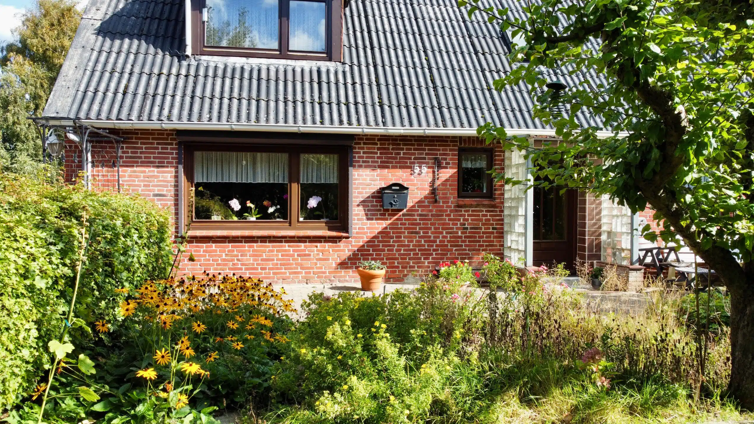 Besonders hervorzuheben ist die attraktive Lage: Das große, eingewachsene Grundstück bietet viel Privatsphäre und eine idyllische Umgebung.